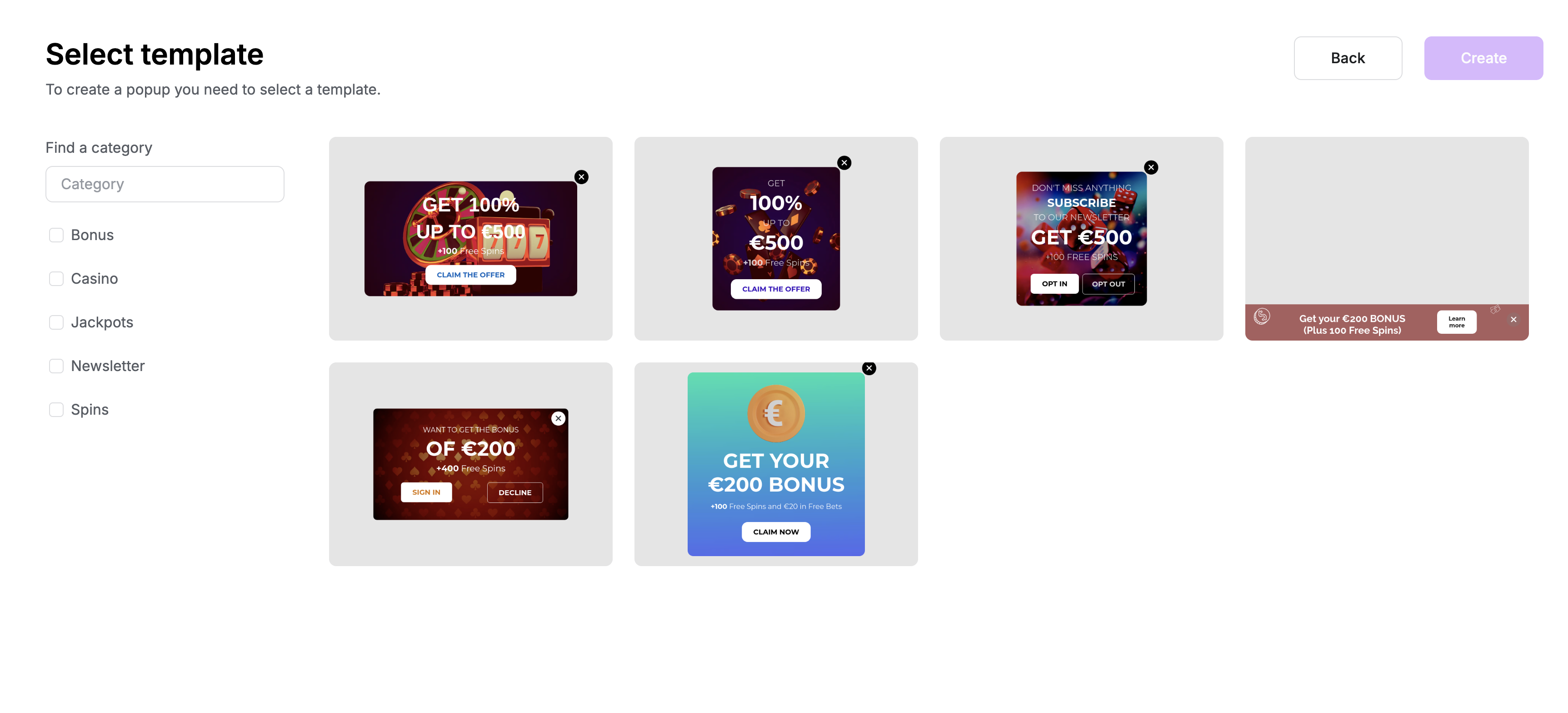 FlowsWave provides a set of predefined templates to help you get started quickly. When creating a new pop-up, you'll first see a screen like the one below, where you can choose a starting template. You can select a template that closely matches your desired pop-up, though you’ll have the option to fully customise it and redesign your pop-up in the next section of FlowsWave.